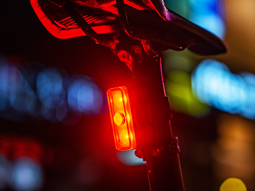 Baglygten har seks lysindstillinger: 3 konstante (High, Medium, Low) og 3 blinkende.