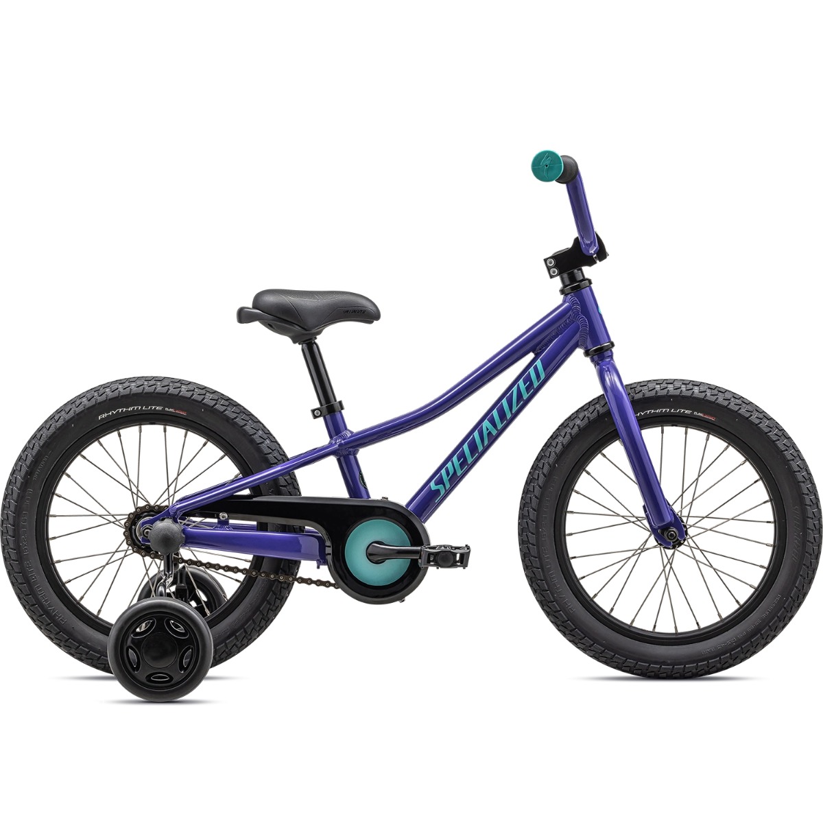 Rammen i A1 aluminium er let og stærk, og den ultra-lave standover gør det nemt for børn at hoppe på og vokse med cyklen. Rhythm Lite-dækkene 16×2,3” giver greb, komfort og stabilitet på alle typer underlag – klar til sjov og udforskning!